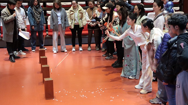 “云想衣裳花想容,春风拂槛露华浓。”伴随着和煦的春风,活动在“汉服秀”中拉开帷幕。一群穿越而来的“汉唐美人”轻轻转动长裙,举手投足间如风拂杨柳般婀娜多姿,一展汉服的雅致之美。接着,帅气的男同胞通过可爱有趣的现代“舞蹈秀”,为“半边天”送上了节日祝福。“投壶”作为中国古代宴会上的一种礼仪也被引入此次活动现场,让参与者在投掷间感受到了其中的乐趣和文化内涵。“你来比划我来猜”“踩你没商量”等趣味小游戏将现场气氛推向了高潮。整场活动在颁奖的乐声中落下帷幕,充满了对女性职工的关心与热爱。