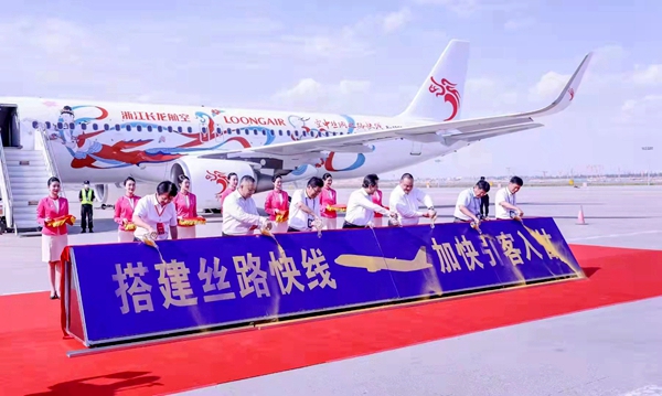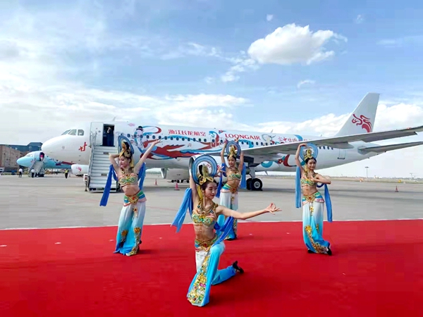 3月16日,满载着甘肃文化旅游元素的“飞天号”飞机在杭州萧山国际机场腾空而起,经停恩施后飞往兰州,见证了甘肃省文化和旅游厅联合浙江长龙航空有限公司合力打造“航空+旅游”新产品,加快构筑“快进慢游”交通网络的探索与实践。