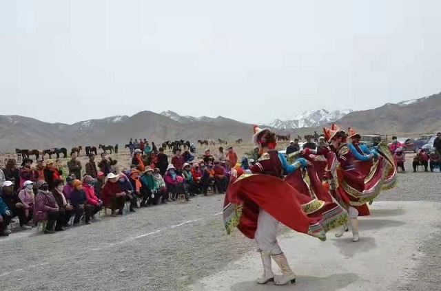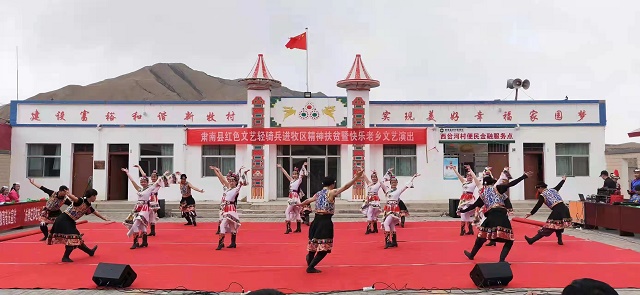 “百姓的掌声和喝彩,就是我们演出的动力。哪里有百姓的需要,哪里就是我们演出的舞台。”肃南裕固族自治县民族歌舞团(以下简称肃南县民族歌舞团)演员安梅这样说。在肃南县祁连雪山脚下的裕固草原,是甘肃独有的少数民族——裕固族千百年来生活的美丽家园。草原上,人们经常看到这样一支队伍:他们背着乐器、服装,有时带着流动舞台车,遇到雨雪天气或流动舞台车到达不了的地方时,就坐拖拉机、骑马、骑牦牛;他们深入每一处牧区草原,战酷暑、迎风雪,为草原上的牧民群众和生产一线的基层职工表演歌舞、宣传党的政策,他们的足迹遍布了裕固草原的每一个角落。同样成立于1974年的肃南县民族歌舞团,几十年来深入基层、为民服务的情怀始终如一。海拔3000多米的皇城草原、海拔4000多米的祁青工业园区,在这些常人走路都要大口喘气的地方,肃南县民族歌舞团的演员们,克服剧烈的高原反应,用精湛的演技、优美的舞姿、敬业的演出,为牧民群众和一线工人带去了一场场精彩的文艺演出。2018年以来,肃南县民族歌舞团累计演出550多场次,收看观众达100多万人次,在文艺润心、脱贫攻坚和助力乡村振兴方面发挥了重要作用。