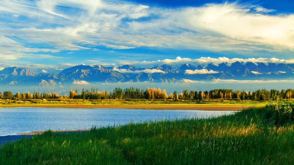 在巍巍祁连的映衬下亭台楼阁相映成趣