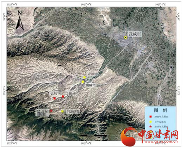 甘肃武威唐代吐谷浑王族墓葬群位于甘肃省武威市西南,地处祁连山北麓,主要分布于武威南山区冰沟河与大水河中下游北岸的山岗之上。2019年以来,由甘肃省文物考古研究所牵头,武威市文物考古研究所和天祝县博物馆参与的考古发掘项目组,对该墓葬群展开了持续的考古调查、勘探及发掘工作。2019年10月至12月,对吐谷浑喜王慕容智墓进行了考古发掘,该墓为长斜坡墓道的单室砖室墓,是目前发现唯一保存完整的吐谷浑王族墓葬。墓葬发掘清理出大量的珍贵文物,其中如胡床、大型床榻、六曲屏风、列戟屋模型、成套武备等,皆为国内同时期相关文物首次或罕见发现。在该墓甬道中出土的《慕容智墓志》首次提及武威南山区“大可汗陵”的存在。