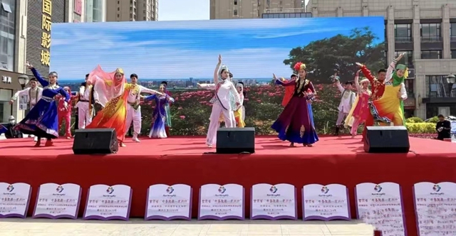 4月23日,由临夏州委宣传部、临夏州文化广电和旅游局主办,临夏州民族歌舞剧团、临夏市委宣传部承办的临夏州“我们的中国梦——文化进万家”惠民演出活动在临夏市中天健广场举行。