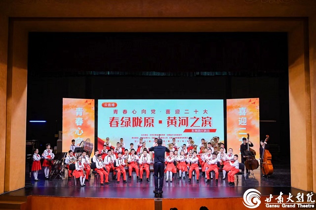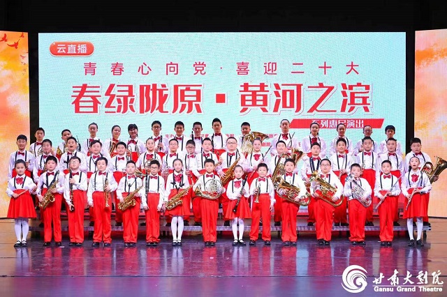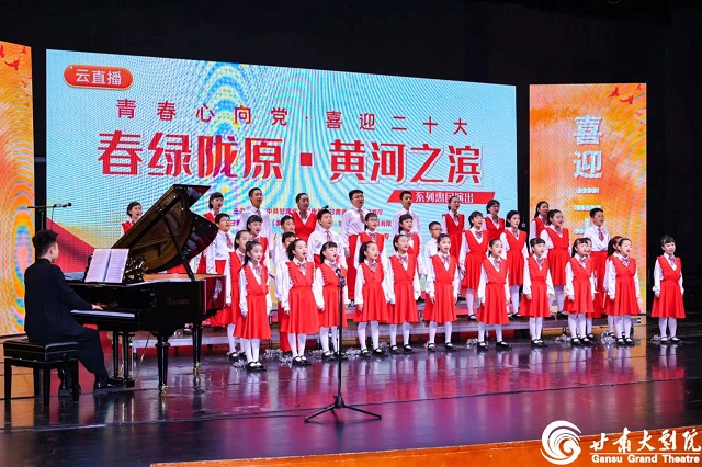 5月4日下午,由中共甘肃省委宣传部、甘肃省文化和旅游厅主办,甘肃会展中心(集团)有限责任公司、甘肃大剧院管理有限责任公司承办的《青春心向党·喜迎二十大》“春绿陇原”五四青年节云直播专场演出,在甘肃大剧院成功上演,甘肃大剧院少儿合唱团、甘肃大剧院青少年红杉管乐团、甘肃大剧院青少年弦乐团,以童声合唱及青少年乐器演奏的形式联袂演出。在演出中,孩子们以满满的激情唱响了对党的热爱之情,奏响新时代青少年的奋斗之音,展现出当代陇原青少年积极向上的精神风貌和青春风采。