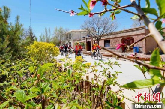 甘肃“五一”假期推出8条特色路线,“串联”百家景区。图为游客在甘肃张掖市境内骑行。