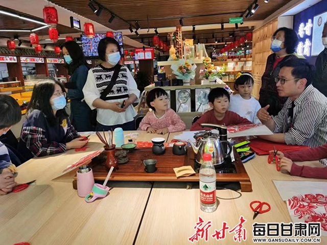 “五一”期间,甘肃省非遗保护中心指导的“陇遗有礼”非遗生活体验馆试营业。里面有传承人作品展示及销售,同时还有提取甘肃非遗元素制作而成的“文创产品”销售。体验馆内还组织了刻葫芦、剪纸、手工编织等“非遗”体验项目。