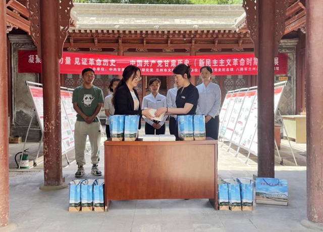 活动现场,甘肃党史纪念馆工作人员向八路军兰州办事处纪念馆捐赠了《红军长征过甘肃》《八路军驻甘办事处及抗战时期甘肃国统区党组织》《甘肃党组织的创建及其活动》《解放战争时期的中共甘肃工委》等书籍。
