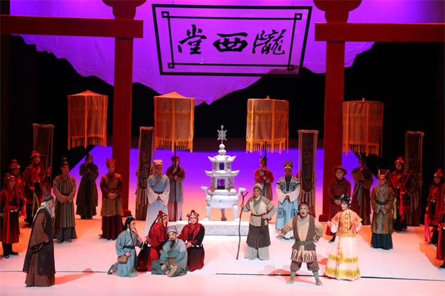 第六届甘肃戏剧红梅奖大赛在张掖丝绸之路文化艺术中心举办,图为秦腔历史剧《李时珍传奇》演出剧照。 朱天玲 摄