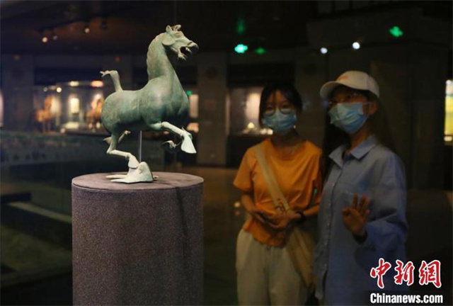 2021年5月,游客在甘肃省博物馆参观“镇馆之宝”铜奔马。(资料图)高展 摄