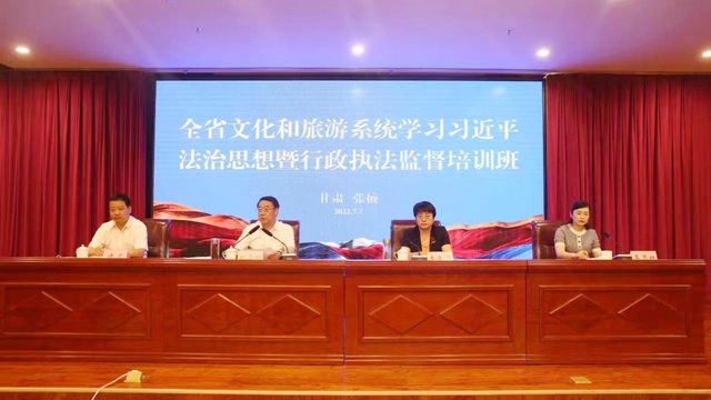 7月7日至9日,全省文化和旅游系统学习习近平法治思想暨行政执法监督培训班在张掖举办。省文化和旅游厅党组成员、副厅长田学功,张掖市副市长娄金华出席开班仪式并讲话。