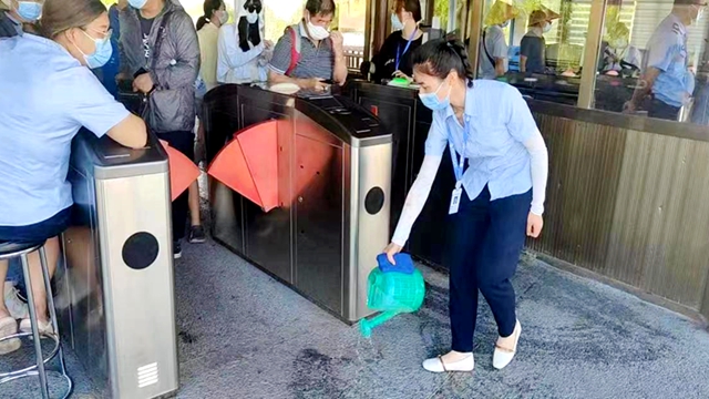嘉峪关文物景区工作人员对景区入口进行定时消杀