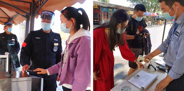 敦煌鸣沙山月牙泉景区和嘉峪关文物景区进行游客测温登记