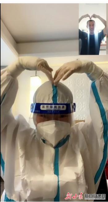 甘肃本轮疫情发生以来,这对刚结婚两个月不到的夫妻至今未见。8月4日这天,兰州市消防救援支队特勤一站二级消防士师红波利用休息时间,给正在抗疫一线工作的妻子打了视频电话:“丹丹,七夕节快乐!这是我们结婚后的第一个七夕节,因为疫情你我都要坚守在各自的岗位上,还请你原谅我不能给你一个浪漫的节日。外出采集核酸时一定要做好个人防护,口罩、手套、防护服一定要检查仔细……我等你平安归来!节日快乐!”
