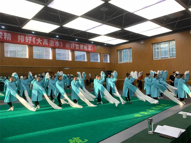 2021年初,在甘肃省委宣传部、省文化和旅游厅的关怀指导下,甘肃省陇剧院研究查阅有关黄河文献典籍,根据《尚书·禹贡》大禹“导河于积石”这一记载及考证资料,“积石”正是甘肃省临夏州的“积石山”,这一发现给文艺工作者带来了创作的灵感和支点,《大禹治水》作为反映黄河文化题材的舞台剧目应运而生。在经过一系列前期调研论证后,2021年5月,甘肃省陇剧院正式启动了《大禹治水》的创排。对于这样一个宏大的主题,该如何去呈现?如何将先民们在长期治水实践中形成的公而忘私、忧国忧民的奉献精神,艰苦奋斗、坚忍不拔的创业精神,尊重自然、实事求是的科学精神,民族融合、九州一家的团结精神,攻坚克难、勇挑重担的英雄精神,用舞台艺术呈现在观众面前?这又是一道难题。