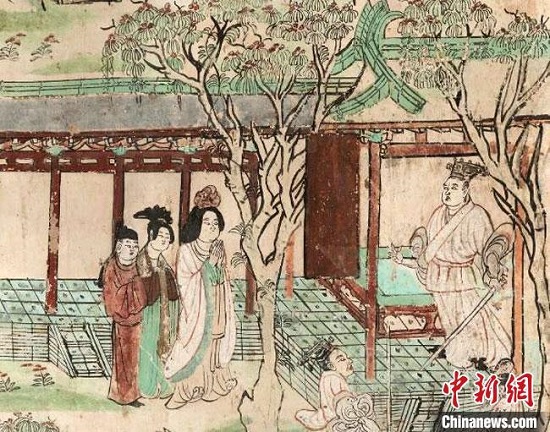 图为此展览精选展品莫高窟第45窟北壁(盛唐)——观无量寿经变图之未生怨(局部)
