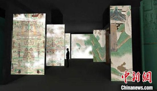 图为此展览数码展示敦煌石窟里的“山水之间”