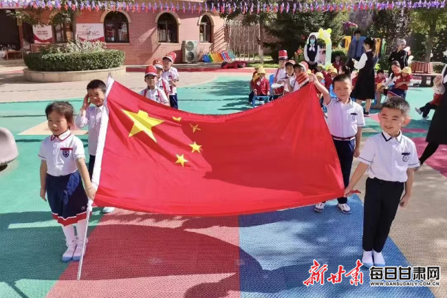 兰州碧桂园幼儿园准备升国旗仪式。