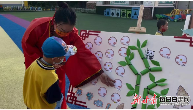 9月7日,兰州市西固区兰玻幼儿园开园。为了让孩子们体会国学的魅力,幼儿园准备了仪式感满满的“开学第一天”,老师们身穿喜庆的红色汉服,带着“兰玻宝贝”们走进园内签名榜,为他们印下见证成长和快乐的入学笑脸印章。同时,也为大班小朋友们举行了“开笔启蒙智慧人生”开笔礼,将中华优秀传统文化的种子播撒到孩子们的心中。