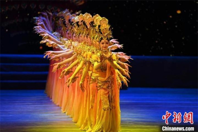 9月9日晚,第三届黄河之滨艺术节在甘肃兰州开幕,图为开幕式舞剧《敦煌神韵》。