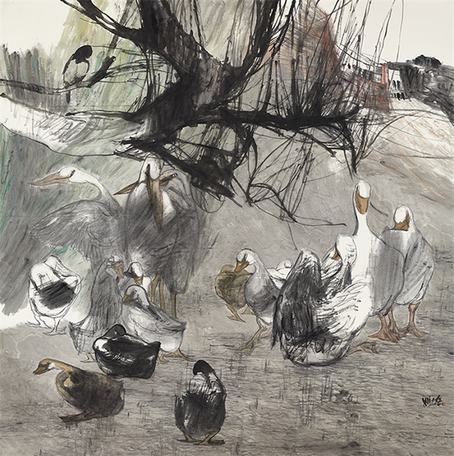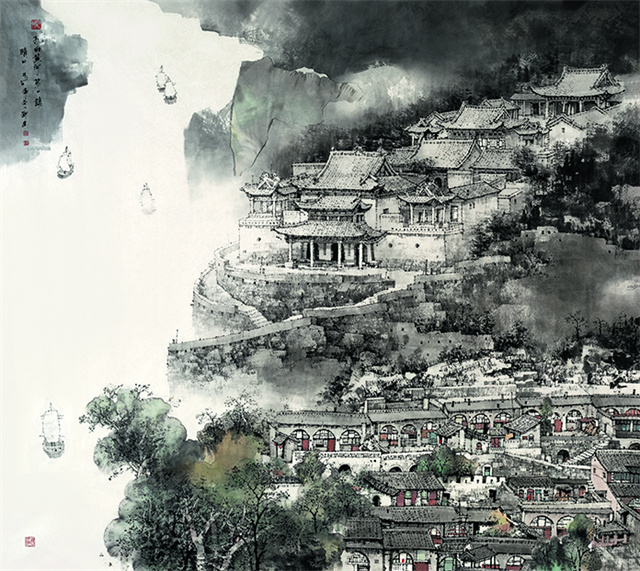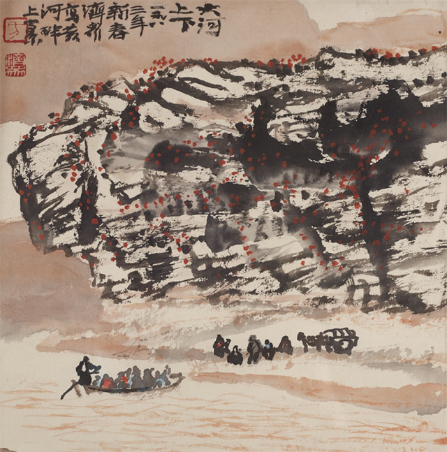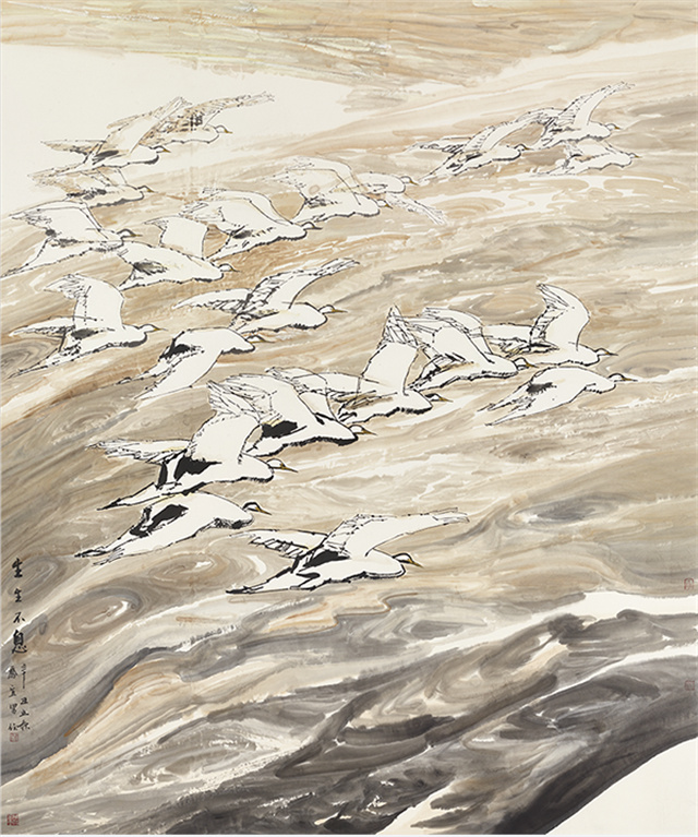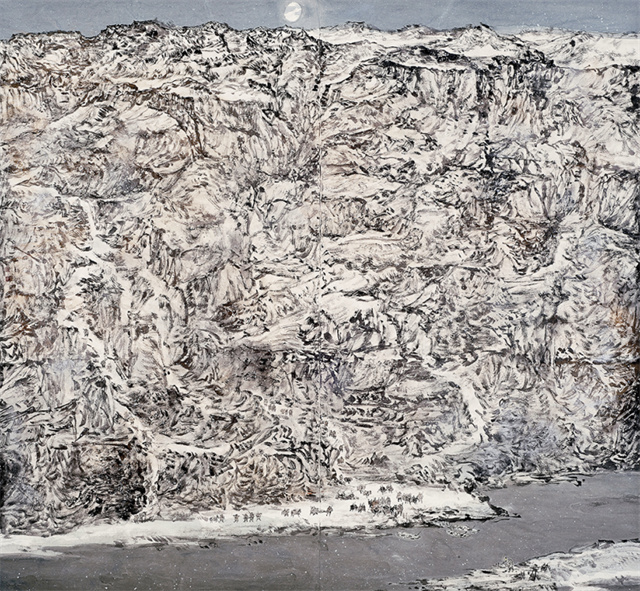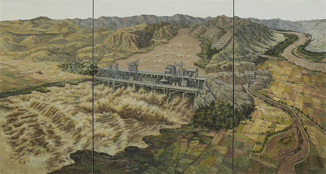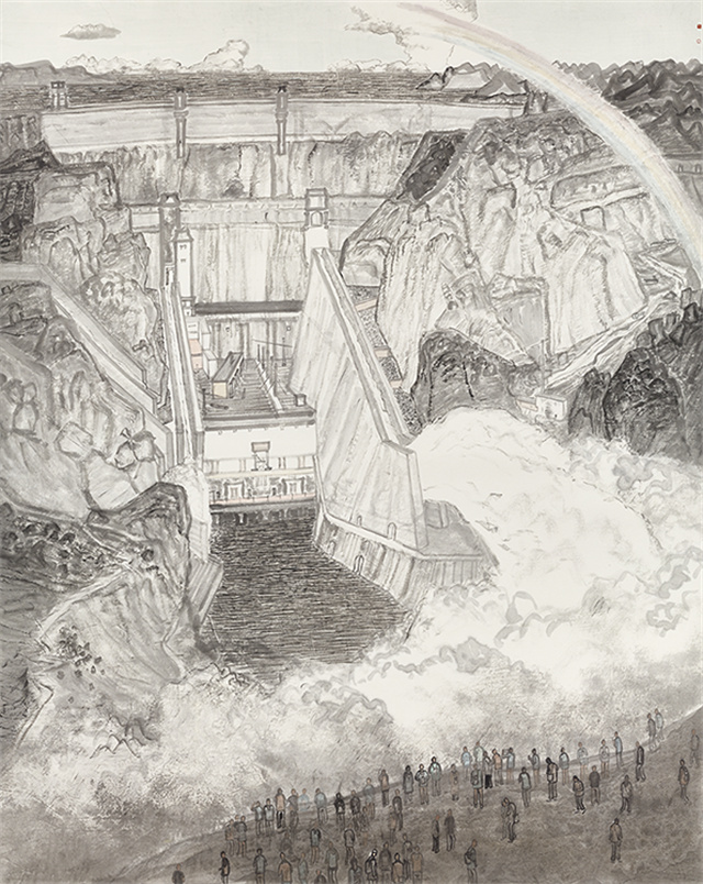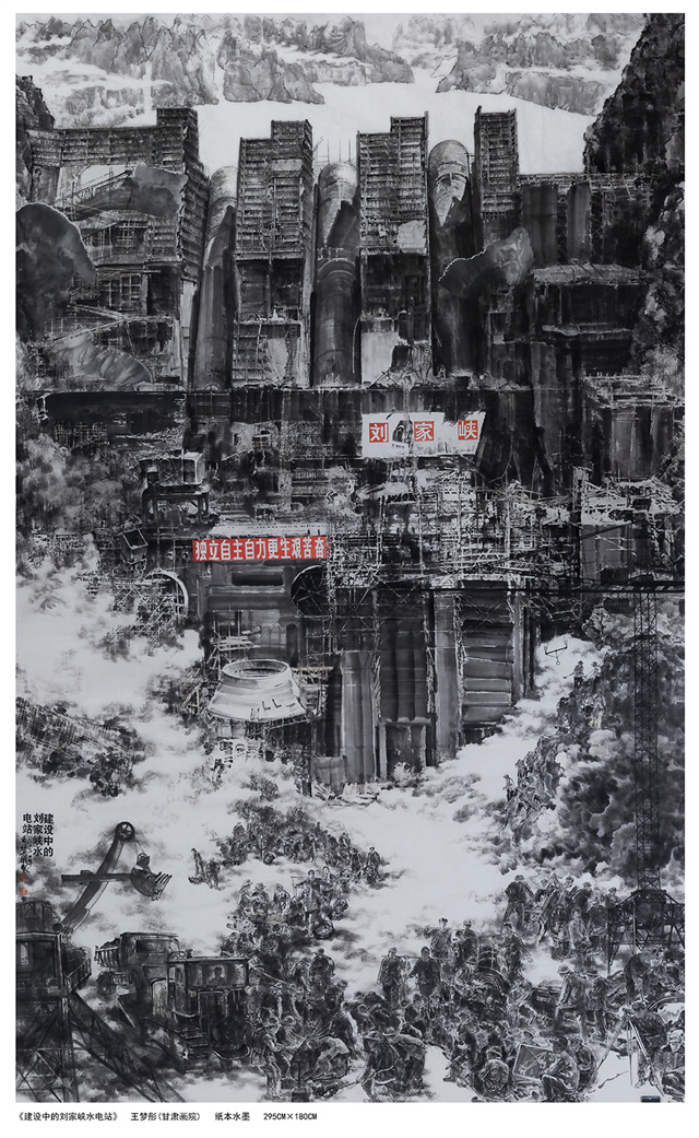 在兰州A9美术馆展厅里陈展的一幅幅作品,就像一幕幕壮丽辉煌的画卷,或演绎、或定格、或回望、或思索着黄河“浩荡贯长虹,浪涛气势雄”的万千姿态,和“石障山屏难阻挡,千回百转总流东”的顽强精神。画家们通过自己手中的画笔,将自己关于母亲河的感动、思索、遐想、期望与黄河文化、中华民族品格,与沉淀于黄河两岸的文化精神相凝结,通过娴熟的绘画技法和饱含情绪的审美意象,展示出了丰富、壮美、深邃的黄河文化与精神内涵。