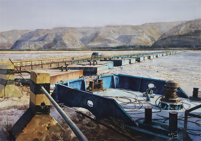 杨晓刚《百年铁桥横渡 金河南北通途》