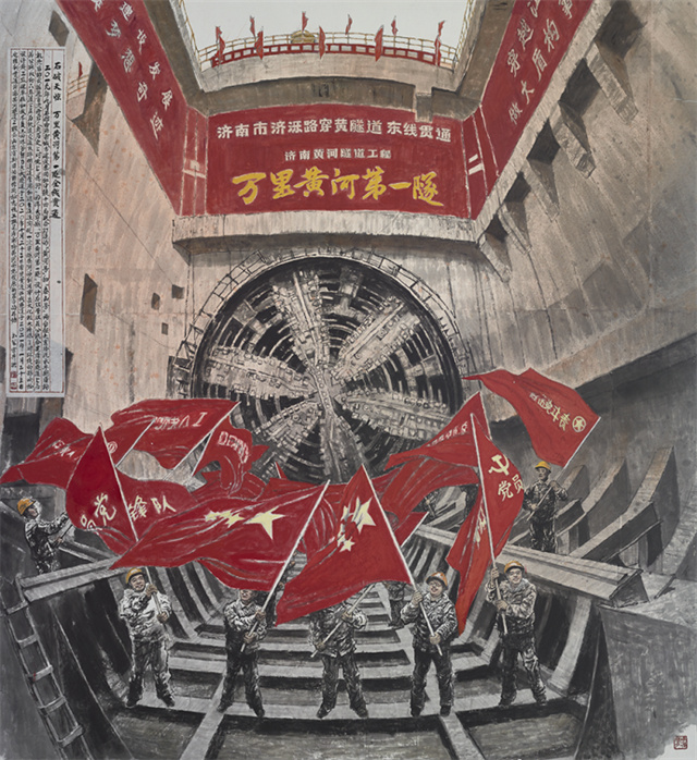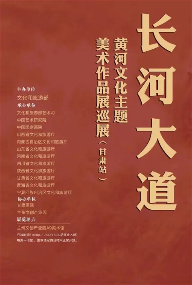 “长河大道——黄河文化主题美术作品展”以艺术的形式,通过美术创作把融生命之河、人文之河、发展之河、自然之河于一身的中华民族母亲河的万千姿态,把中华儿女千年期盼的黄河安澜,把黄河文化的千秋文脉,把黄河儿女的家园欢歌作了历历呈现,就像一条精神纽带,把家国情怀紧密地连在一起,婉转、阔达、澎湃、醇厚……