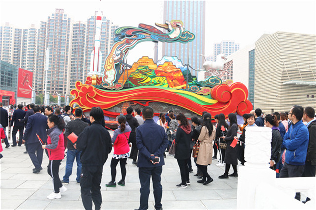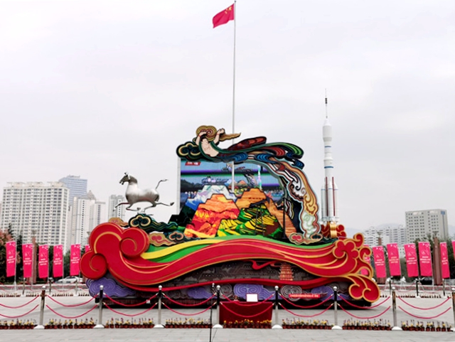 此后,载誉归来的“交响丝路·如意甘肃”彩车一直布放在甘肃国际会展中心广场面向公众永久展出。三年多来,运用雕塑、浮雕、油画等艺术表现形式,聚合玉如意、祁连山、铜奔马、莫高窟等16种元素的甘肃彩车深受广大群众点赞好评,迅速晋升为网红打卡点,已成为入甘游客和广大市民领略祖国大好河山、感知如意甘肃魅力的新名片新景观。对此,家住黄河之滨的周先生颇有感触。他说:“我经常去甘肃国际会展中心广场散步,甘肃彩车一直吸引着不少游客和市民前来打卡留念,每年国庆期间参观合影的特别多。我非常喜欢它的精美艺术设计,更为它寓意不甘落后、蒸蒸日上的如意甘肃新气象而骄傲和自豪!”其实,作为生活在陇原大地的亲历者、见证者,和周先生的感受一样,只要看到集内涵和颜值于一身的甘肃彩车,就会油然而生对脚下这片土地深沉的大爱。