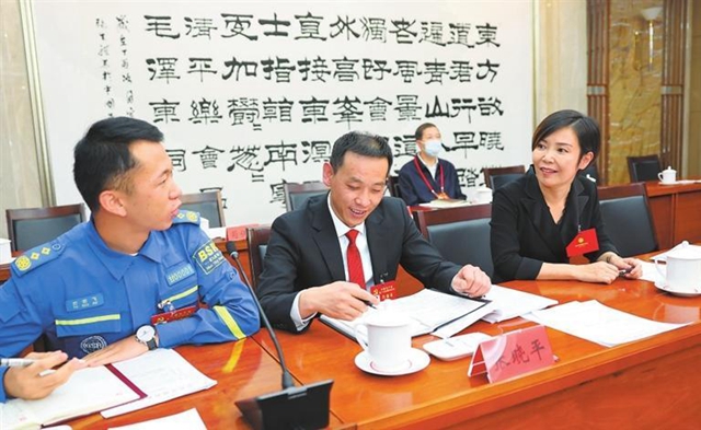 10月17日,甘肃省代表团在驻地继续讨论党的二十大报告。