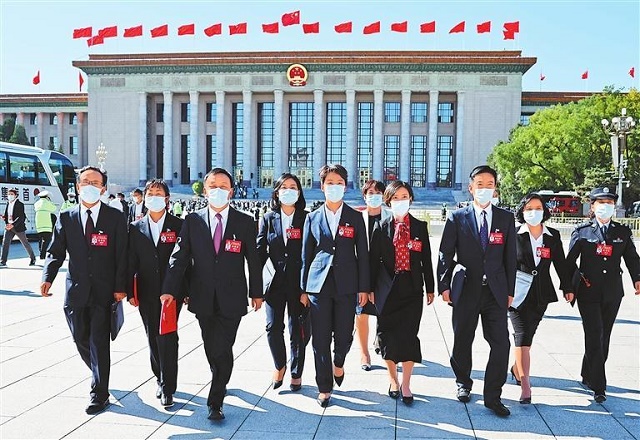 10月22日,中国共产党第二十次全国代表大会在北京人民大会堂胜利闭幕。出席党的二十大的甘肃省代表满怀豪情、步履坚定地走出人民大会堂。