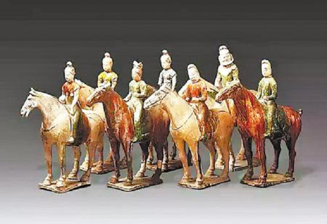 图片出土于秦安叶家堡的唐代三彩骑俑队列