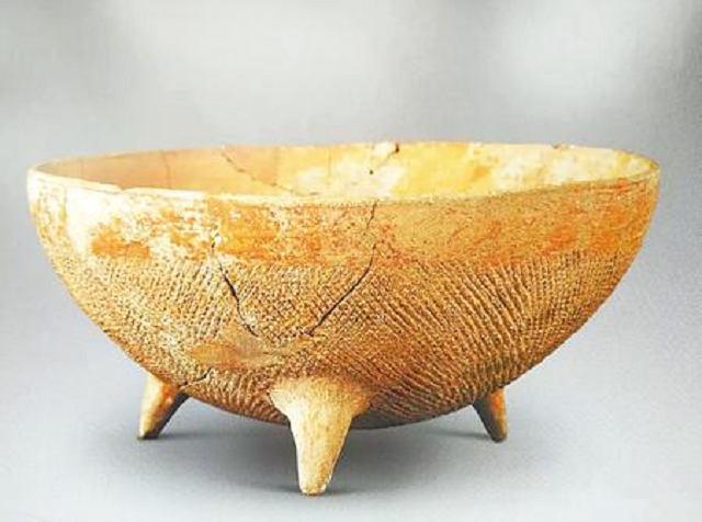 属于大地湾一期文化的宽带纹三足彩陶钵