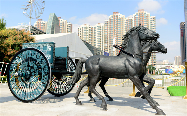 ——文物活化利用工程。作为全国文物大省,甘肃省文旅厅深入学习领会、认真贯彻落实习近平总书记关于“让文物活起来”的重要论述精神,持续激活文物资源和文化遗产蕴含的创新创造基因,不断提高展示传播水平,让文物说话,让历史说话,让文化说话,已经成为全省文旅工作者的生动实践。正在加快敦煌研究院“典范”“高地”建设,推进长城、长征、黄河国家文化公园建设。实施中华文明探源工程和“考古中国”等重大项目,以甘肃秦文化和西戎文化考古成果为原型复制“战国豪车”,赋能文旅产业。由甘肃省文旅厅组织制作的战国戎人车舆,严格依照马家塬战国戎人贵族墓地出土古车式样,采用铜雕髹漆等技艺,再现了战国戎人车舆风采,体现了甘肃文旅系统融入“一带一路”倡议、秉承丝路精神、复兴丝绸之路、构建人类命运共同体的文化自觉。战国戎人车马以文创的形式与甘肃彩车一道复原展出,即刻走进大众视野,成为甘肃文旅和省会兰州的又一张靓丽新名片、城市新地标。