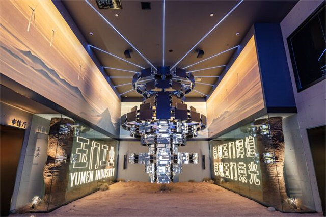 为还原探油、采油、炼油全过程,再现以石油为主的产业链演化过程,7月1日,集互动体验、展示宣传、工业研学、文旅消费于一体的特色工业旅游打卡地“玉门之光”工业体验馆开馆,让玉门油田红色旅游景区增色不少。走进馆内,序厅的“玉门之光”艺术装置融合钻头、井架、蘑菇云、风车等元素,连通天地的氛围感展现了自然与工业的完美融合。