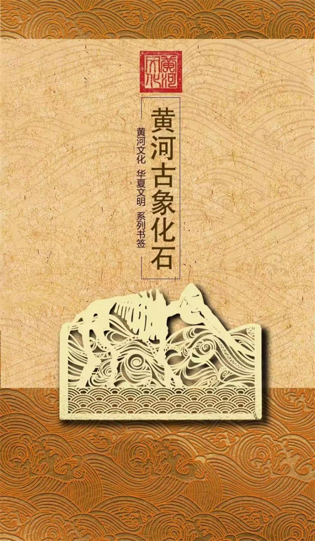 “应时、取宜、守则、和谐”,万年以来,我们脚下的黄土奠定了中华一万年文化史、五千年文明史,这里好比一本厚重的书,让华夏族人开启了中华文化的新篇章。黄河古象化石书签以出土于甘肃省庆阳市合水县板桥乡的黄河古象化石为基础元素,以剪影的形式表现黄河水纹,通过图案的装饰性,再现了古象深陷淤泥形成化石的过程,展现了其历经沧桑岁月的风雕雨蚀后所留下的历史足迹。