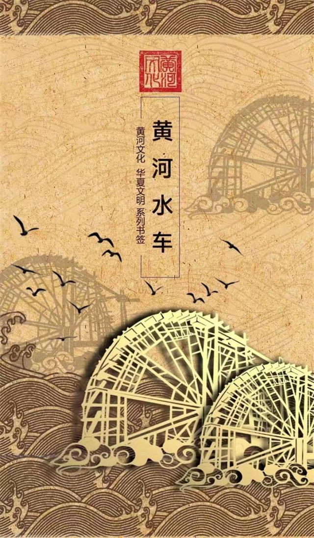 九曲黄河,蜿蜒万余里,它把流经地区的农耕文化、草原文化、丝路文化等各种样态的文化串通连接在一起。黄河水车书签源自兰州城北白塔山下、金城关前的水车造型,表现出中华民族伟大的创造力。