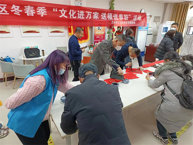 写春联贴春联是迎接新年的传统习俗;春节前夕,兰州新区商文旅局积极履行公共文化服务职能,充分发挥文化阵地、文化社团、群众书法骨干贴近群众优势和专业优势,组织开展“迎新春送福送春联”活动15场次,活动深入图书馆、社区、景区、企业、机关、广场等,累计送“福”字15000副、送春联15000副;将新春的祝福汇聚笔尖,传承优秀民俗,传递节日祝福,营造浓浓年味。