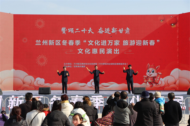 连日来,兰州新区中川体育公园的中午热闹非凡,兰州新区商文旅局组织开展的兰州新区冬春季“文化进万家 旅游迎新春”文化惠民演出在此连续上演;省级院团演绎的音舞快板《二十大精神放光芒》、秦腔《三击掌》、舞蹈《盛世欢歌》、相声《甘肃是个好地方》等形式多样、内容丰富的精彩节目吸引广大市民络绎前来,累计近万人次现场共享高品质的文化视听盛宴,极大丰富了广大群众节日文化生活。