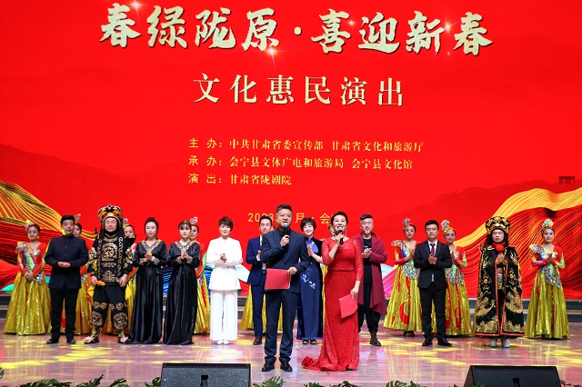 腊鼓频催新春近,文艺惠民暖人心。1月15日,在新春佳节即将来临之际,由省委宣传部、省文化和旅游厅主办,白银市、会宁县两级文旅局、文化馆承办,省陇剧院演出的“春绿陇原”文艺惠民活动在会师圣地会宁举办。本次活动作为全省“文化进万家 旅游迎新春”百日攻坚行动的重要组成部分,旨在学习贯彻党的二十大精神和习近平总书记给中国东方演艺集团艺术家们的回信精神,坚持以人民为中心的工作导向,让人民群众尽享文化艺术发展成果、欢乐祥和过春节。