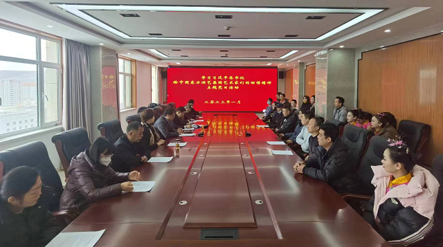 演出开始前,省文化和旅游厅艺术处党支部、机关党委党支部和省陇剧院第二党支部联合开展了“学习习近平总书记给中国东方演艺集团艺术家们的回信精神”主题党日活动,三个支部的党员集体学习重温了习近平总书记给中国东方演艺集团艺术家们的回信,党员代表领学了文化和旅游部办公厅《关于认真学习贯彻习近平总书记给中国东方演艺集团的艺术家们的回信精神的通知》。国家一级演员、省陇剧院副院长、第二党支部书记窦凤霞在交流发言中表示:“我们文艺工作者要始终牢记习近平总书记的深情厚望和殷殷嘱托,扛起新时代陇原文艺工作者的使命担当,在助推复工复产、提振信心、服务群众的各项举措中发挥文旅铁军作用,以饱满的热情和精湛的技艺将文艺之花绽放在这片红色的热土上,为会宁县的父老乡亲奉上最美好的新春祝福。”