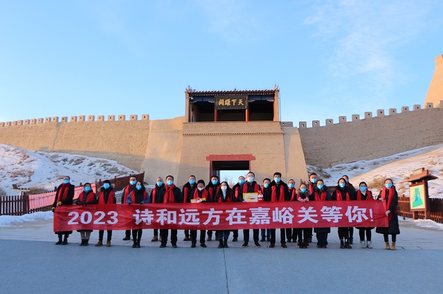 2023年元旦,嘉峪关市在关城景区举办“新年迎接关城第一位游客”活动,来自山东省日照市的3名游客成为新年“首游”,市文旅局为他们赠送新年大礼包,用嘉峪关热情好客的魅力,向五湖四海的宾客发出邀请。