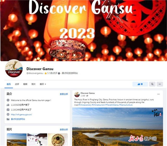 记者从甘肃省文旅厅获悉,截至目前,甘肃文旅Facebook英文官方账号“Discover Gansu”粉丝数超过110万,已发展成为甘肃文旅讲好甘肃故事、传播丝路文化的知名海外名片和对外宣传重要阵地。