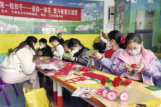 近日,兰州市图书馆举办了“扣好人生第一粒扣子——送你一束花,爱与美好沉浸营”主题活动。在“沉浸营”中,孩子们品读爱心绘本、体验爱心活动,在感受爱与美好的同时度过了快乐的时光。