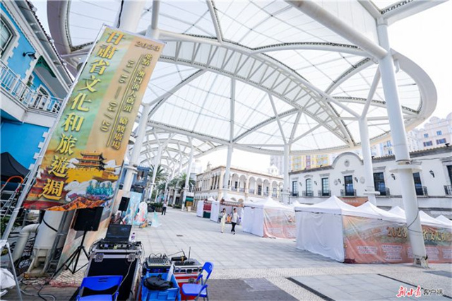 澳门街头上,醒目的“甘肃文化旅游周”宣传标语。