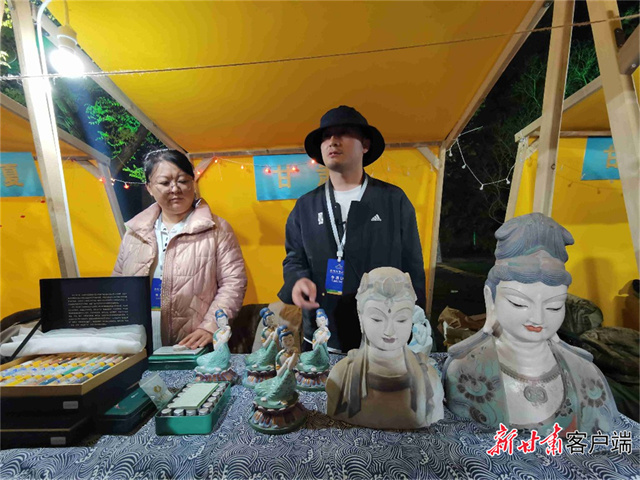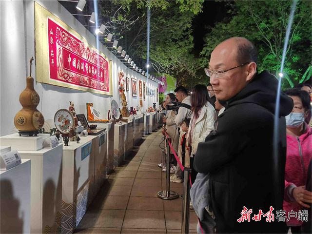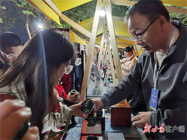 甘肃的夜光杯雕和敦煌彩塑一经亮相,就吸引了市民和游客驻足欣赏。