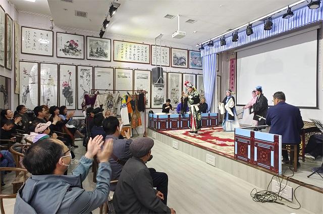 雅集是中国文人的一种情怀。“五一”期间,除了官方举办的诸多文化娱乐活动,平凉市民间还组织多场雅集活动。5月1日晚举办的俊杰文化传媒“秦馨墨韵”五一雅集就是其一。小小舞台,平凉市秦腔名角领衔,众多爱好者或粉墨登场,或平常装束,逐一上台吼上一段秦腔,既有专业的唱念做打,又有群众爱好者的票友酬唱。精彩之处,喝彩、掌声不断,让参与人士大呼过瘾。“‘五一’期间,我们一群秦腔、书画爱好者聚在一起畅玩,自得其乐,不亦乐乎。”秦腔爱好者杨俊杰表示。听戏之余,参加雅集的平凉本土书画家胡晓云、崔振世、万亚林及一些书画爱好现场即兴挥毫,或水墨氤氲,或赋彩设色,创作出许多歌颂春天歌颂劳动者的书画佳作,让参与雅集的爱好者大饱眼福。