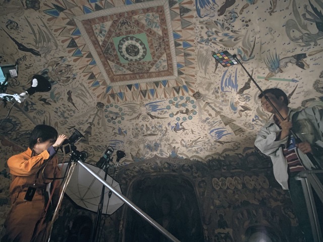 敦煌研究院与东京文化财研究所工作人员在莫高窟第285窟进行摄影研究(资料照片)。敦煌研究院供图