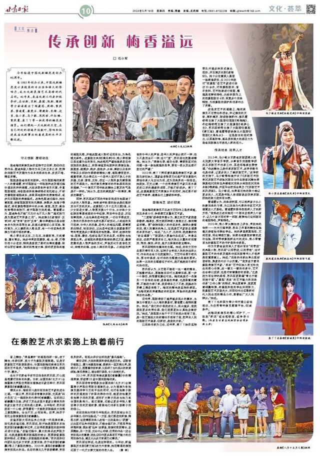 在追求艺术的道路上,梅花奖演员不忘责任和使命,牢记演戏的天职,厚积薄发,陆续排演新作:窦凤霞领衔主演了大型原创陇剧《张桂梅》,佟红梅领衔主演了大型秦腔《银屏公主》,苏凤丽领衔主演了大型原创秦腔《蔡文姬》,雷通霞等联袂演出大型原创陇剧《大禹治水》……这些剧目的适时推出,以其高标准、高品质和强大的感召力为我省戏剧演出市场注入新的活力。