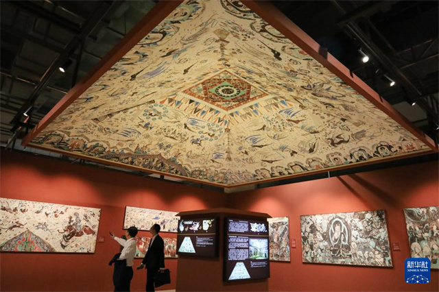 此外,在敦煌国际会展中心,还常设有“融贯东西的典范 敦煌文化主题展”。数字化高保真复制壁画、敦煌出土简牍、敦煌壁画建筑复原模型等,展现了多元文明在敦煌交融荟萃的历程。