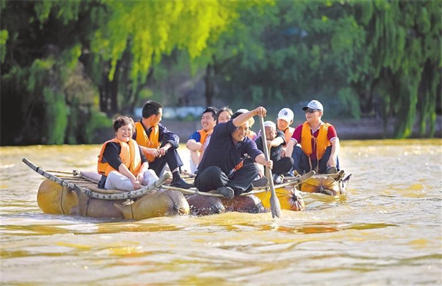 游客乘坐羊皮筏子欣赏黄河美景。 (兰州黄河风情线大景区管委会供图)