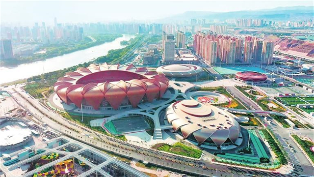 黄河岸边的兰州奥体中心。(七里河区委宣传部供图)