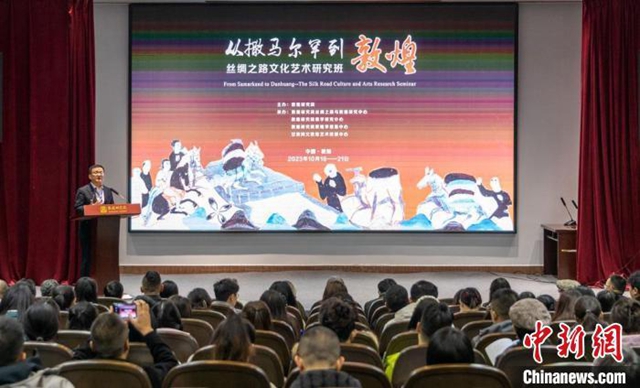 “从撒马尔罕到敦煌——丝绸之路文化艺术研究班”10月16日在敦煌莫高窟开班,旨在为专家学者、青年学子以及丝绸之路文化艺术的爱好者搭建研习平台,加深对以撒马尔罕为中心的粟特地区历史文化的了解,促进对撒马尔罕与敦煌乃至中国文化交流的研究,激发对丝绸之路文化艺术的探索热情。
